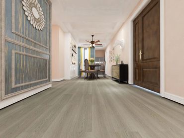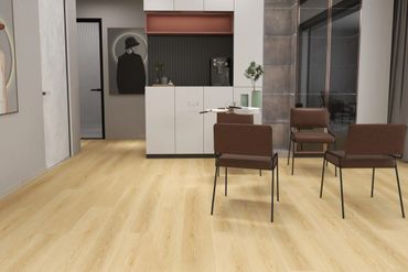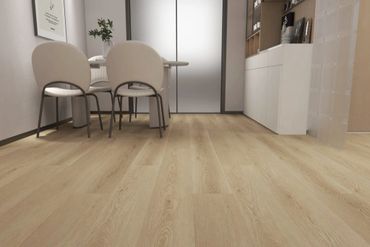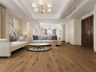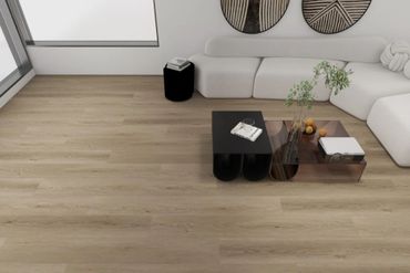 Laminate flooring is constructed from thin, pressed wood board with a repeating printed image of wood fused onto a fiberboard core. One thing to note about laminate flooring is that it is not made from plastic but from a collection of wood fibers with a top layer of resin acting as a “wear layer”.
